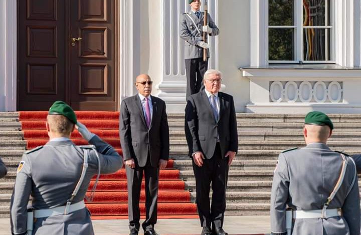 من جانبه قدم الرئيس الألماني التهانئ لفخامة رئيس الجمهورية على نجاح وتطور التجربة الديمقراطية في موريتانيا، معلنا استعداد ألمانيا لمواصلة التعاون مع موريتانيا ودعم سياساتها، مشيدا بدور موريتانيا المحوري في حفظ الأمن والاستقرار في المنطقة، ومهنئاً فخامة رئيس الجمهورية على سياسة العناية بالشباب وأهمية هذه الفئة في البناء الوطني وخطورة عدم احتضانها؛ مؤكدا استعداد ألمانيا لمزيد من الدعم في مجال التكوين المهني لصالح بلادنا.