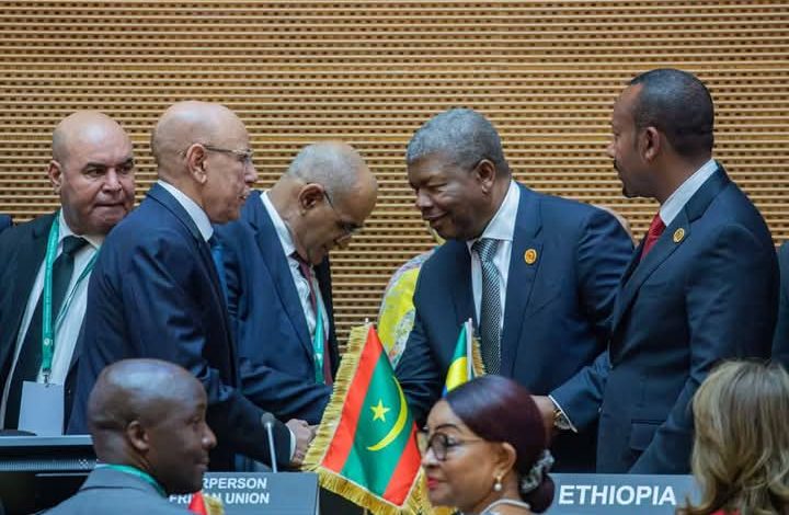فخامة رئيس الجمهورية السيد محمد ولد الشيخ الغزواني، يسلم رئاسة الاتحاد الافريقي إلى فخامة السيد جواو لورينسو رئيس جمهورية انغولا.