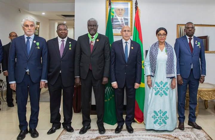 وشح فخامة رئيس الجمهورية، السيد محمد ولد الشيخ الغزواني، مساء اليوم في مقر السفارة الموريتانية في أديس أبابا (أثيوبيا) ، رئيس مفوضية الاتحاد الإفريقي، المنتهية ولايته سعادة السيد موسى فكي محمد، ومجموعة من كبار موظفي الاتحاد الإفريقي، تقديرا للجهود الكبيرة التي بذلوها من أجّل افريقيا طيلة فترة توليه الرئاسة الدورية للاتحاد الإفريقي