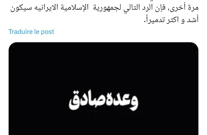 ما حدث الليلة هو الرد الأول و بالطبع، الرد الاساسی على وحشية الکیان الصهيوني القاتل للأطفال، وإذا هذا الکیان ارتكب خطأ مرة أخرى، فإن الرد التالي لجمهورية الإسلامية الایرانیه سيكون أشد و اکثر تدميراً.