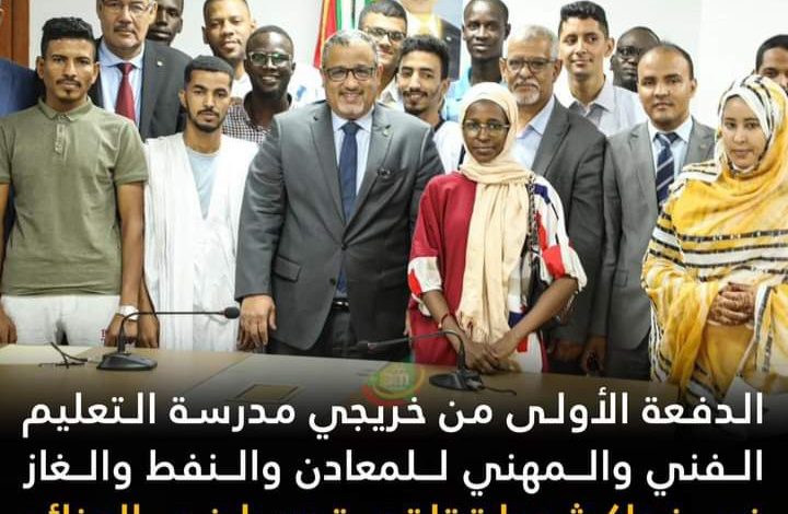 الأمين العام لوزارة التشغيل والتكوين المهني محمد سالم ولد بوخريص يسشرف على توديع الدفعة الأولى من خريجي مدرسة التعليم الفني والمهني للمعادن والنفط والغاز بنواكشوط