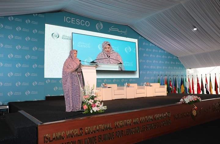 في العاصمة المغربية الرباط للمشاركة في أعمال الندوة العلمية المنظمة بالتعاون بين منظمة المرأة العربية ومنظمة العالم الإسلامي للتربية والعلوم والثقافة (الإيسيسكو)