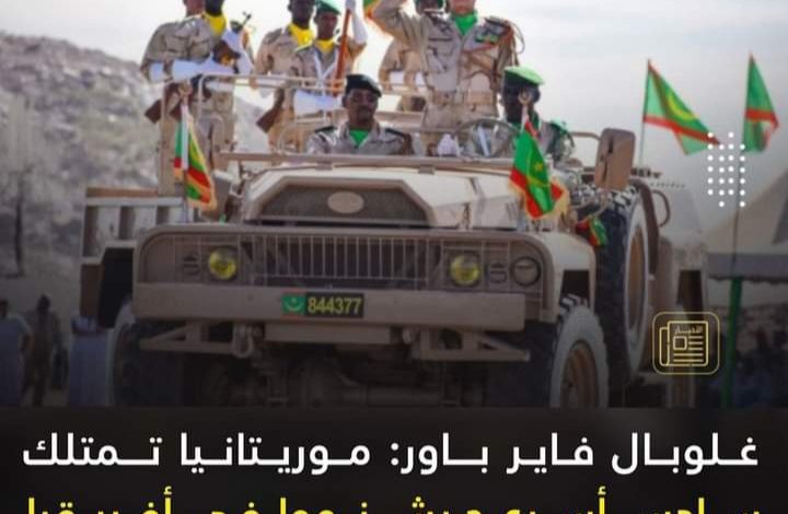 غلوبال فاير باور” تصنيفه السنوي للجيوش الأكثر قوة ونموا في العالم، والذي احتل فيه الجيش الموريتاني المرتبة السادسة أفريقيا، في قائمة البلدان التي تمتلك القوات العسكرية الأسرع نموا